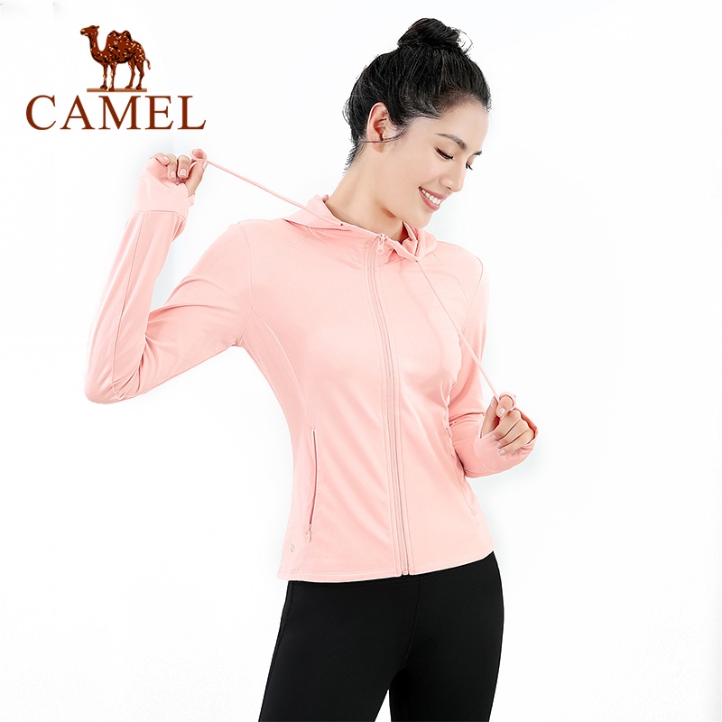 Camel Áo khoác chạy bộ yoga có mũ trùm đầu vải cashmere cho nữ