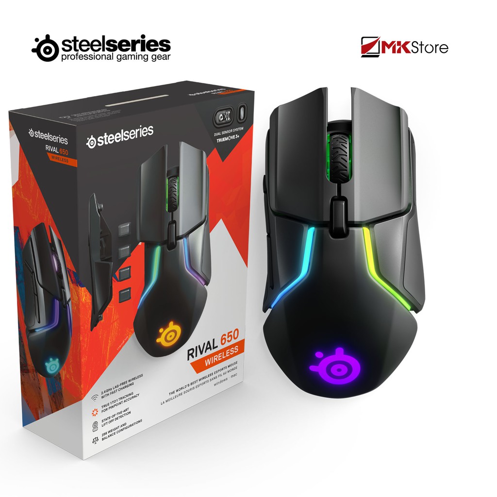 Chuột Máy Tính Gaming Có Đèn Led STEELSERIES RIVAL 650 WIRELESS - Chuột PC Máy Tính Không Dây Led Gaming Cho Laptop Cute Wireless Mouse Chính Hãng- Điện Máy OHNO