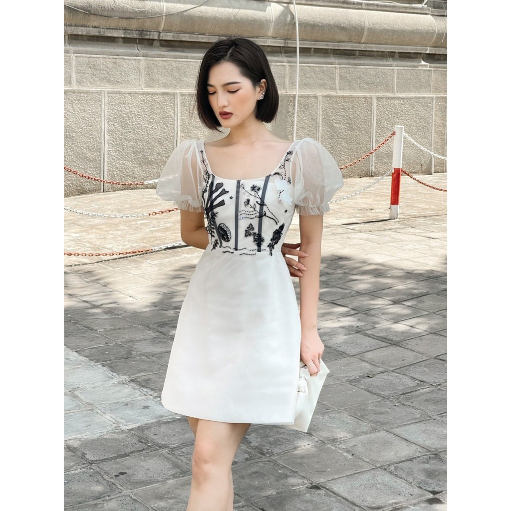THẾ GIỚI DEAL - Đầm trắng cổ vuông, tay lưới phồng Chi tiết đính kết trước ngực áo Đầm ngắn trên gối, khóa kéo sau lưng Kiểu dáng đơn giản, trẻ trung Thiết kế với form dễ mặc, thoải mái Đường may tỉ mỉ, tinh tế Dễ kết hợp với các trang phục, phụ kiện khác.