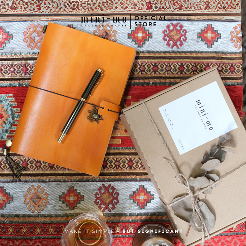 Sổ Tay Da Bò VEG TAN MINI-MO Midori A5 – Hoàn Thiện, Nhuộm Màu Thủ Công, Khắc Tên Miễn Phí