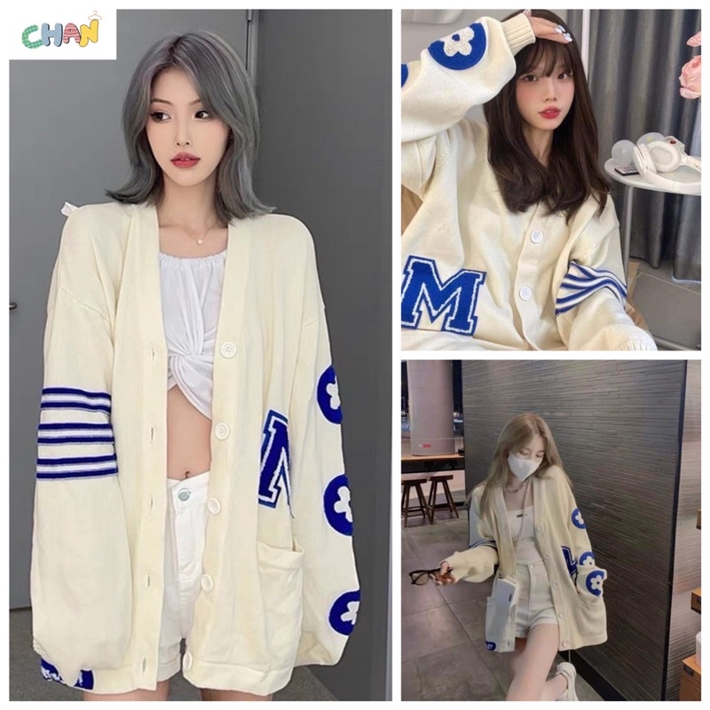 Áo Khoác Cardigan M Tay Hoa Màu Be Ulzzang Hàn Quốc.