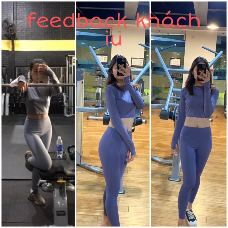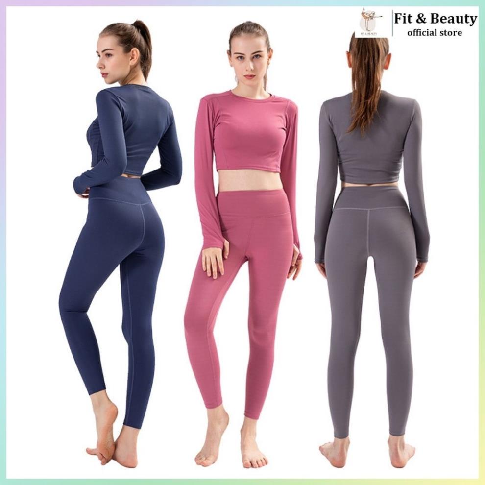 - Set tập gym yoga gồm quần legging và áo croptop dài tay phù hợp với mùa thu, đông, xuân