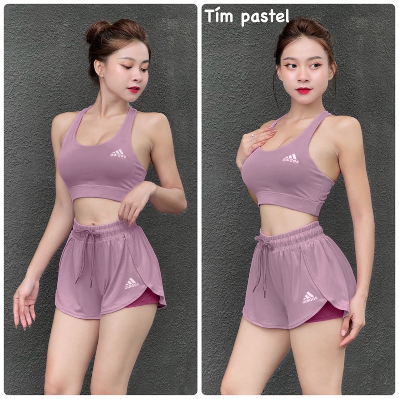 THẾ GIỚI DEAL - Set Ngắn Thể Thao Nữ Thun Polly 2 Lớp Adi Cực Sành Điệu. Áo Bra sẵn lót mút 2 lớp xin cực, quần thun boxer 2 lớp: - Bên Ngoài 1 lớp thun polly 2 da dày dặn co giãn 4 chiều - Bên trong 1 lớp thun polly mỏng nhẹ ôm sát đùi giúp đi tập ko sợ lộ.