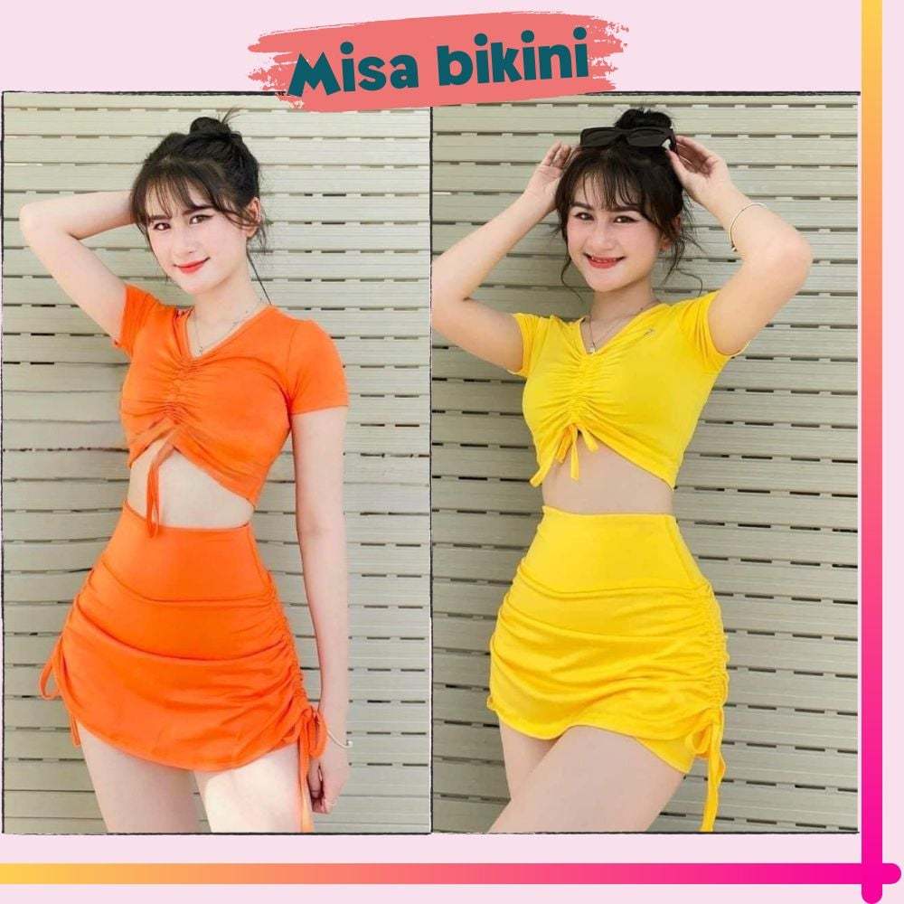 Khuyến mãi 6.6 - Đồ Bơi Nữ Kín Đáo, Đồ Bơi Hai Mãnh Tay Ngắn Áo Váy Dây Rút Lưng Cao Che Bụng MISA 08
